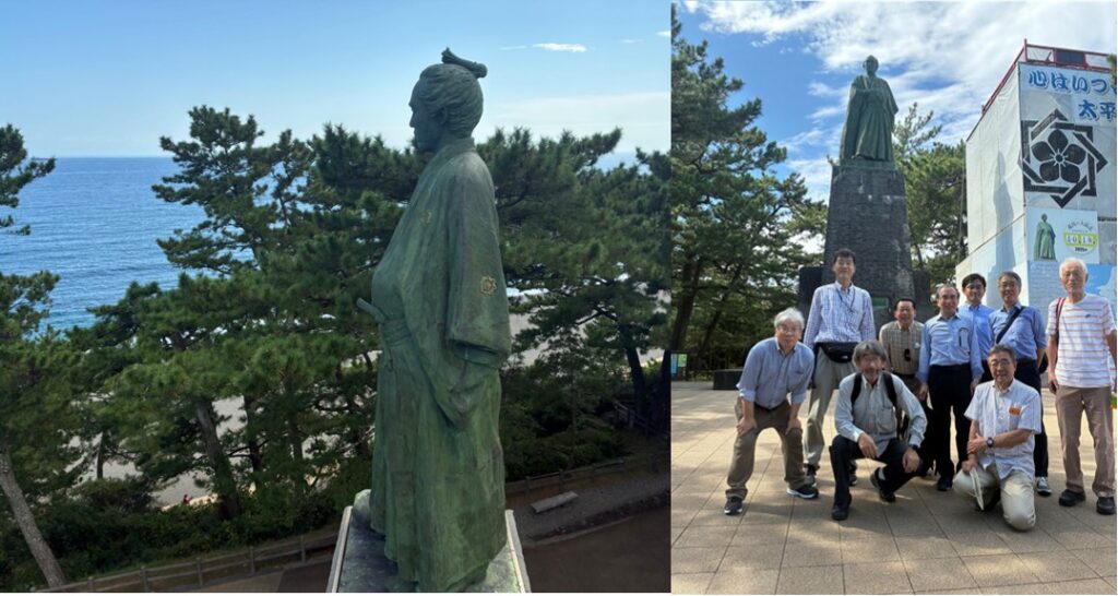 次に桂浜に向かいました。太平洋に向かって立つ坂本龍馬像が有名で、春秋には期間限定で龍馬像の隣に足場が組まれます。これに登り龍馬の目線で太平洋を眺めました。この日は雨が心配されていたのですが暑いくらいの良い天気で、名物「アイスクリン」を皆で食べてひと息つきました。